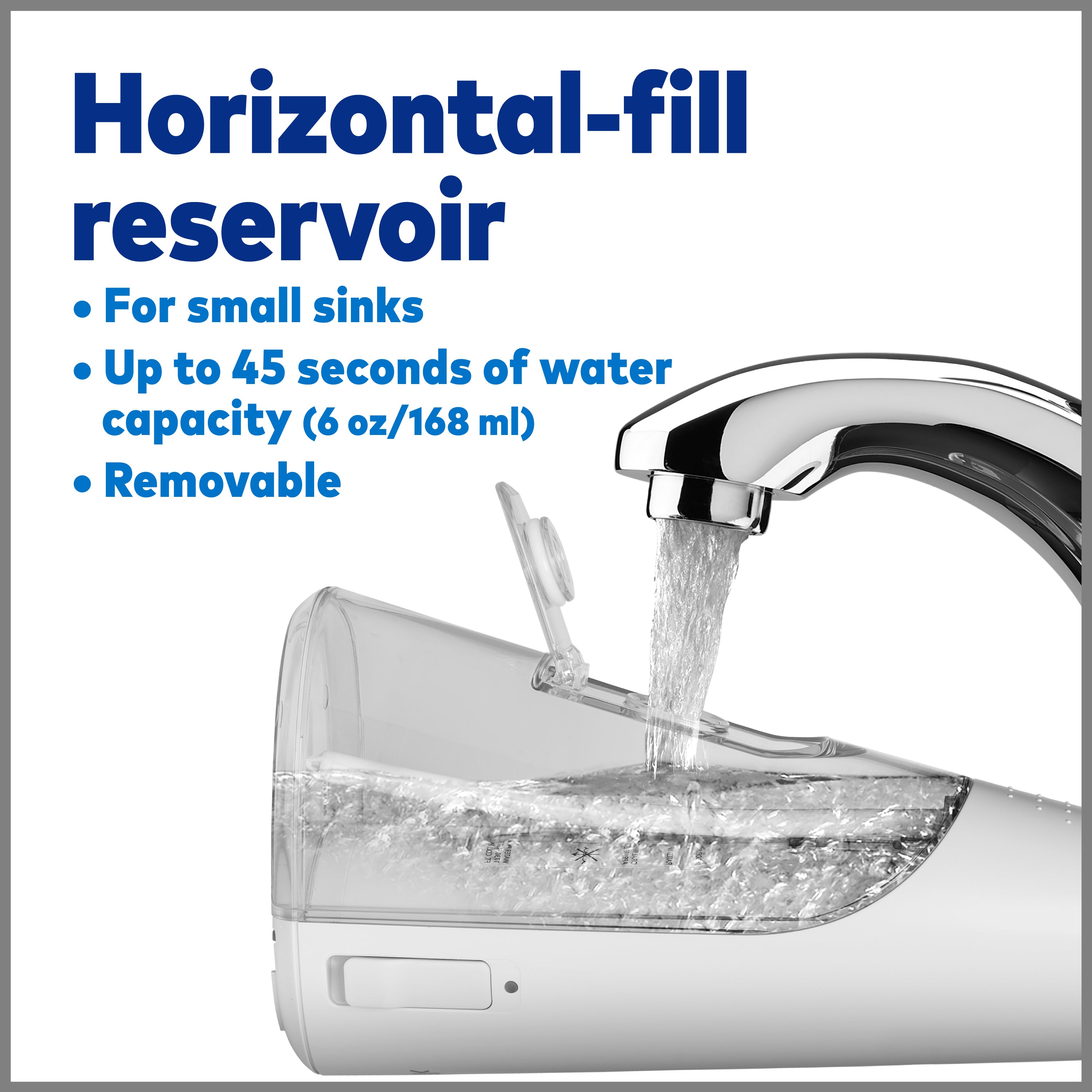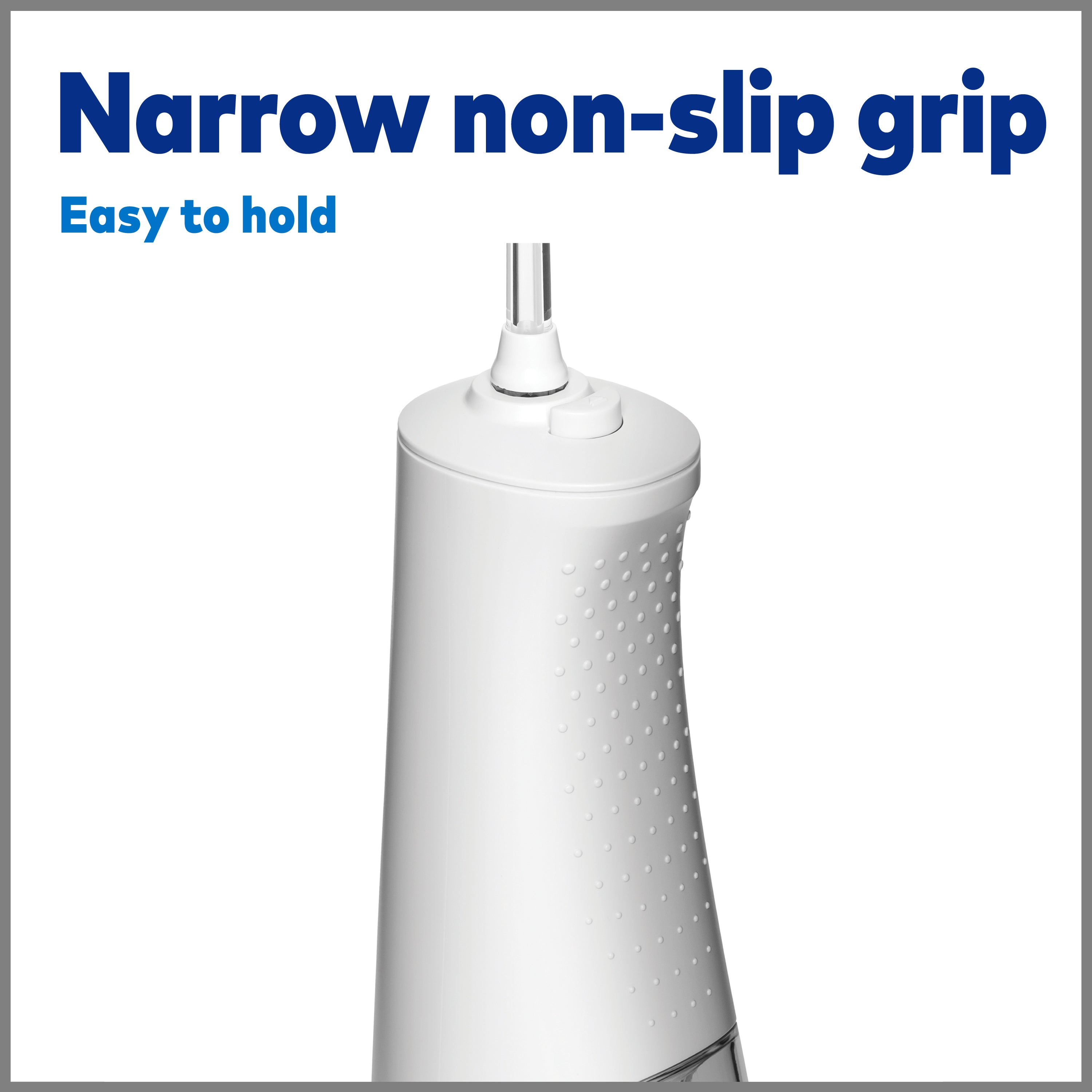 Rechargeable, portable, and a waterproof design makes the Cordless Enhance water flosser perfect for smaller bathrooms, travel, and use in the shower. It offers ultra-quiet operation and an ergonomic non-slip hand grip for ease of use.