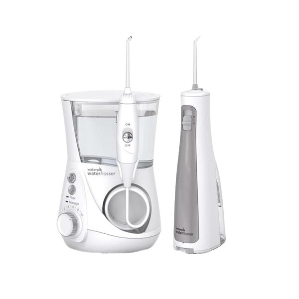 Professional set includes Aquarius Professional and Cordless freedom water flossers.